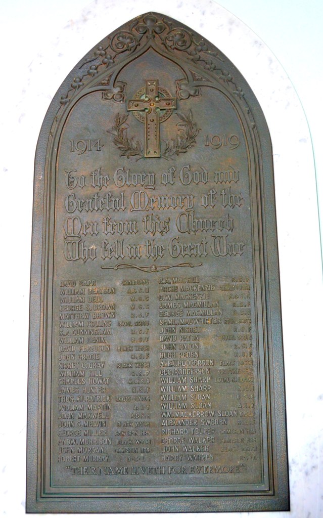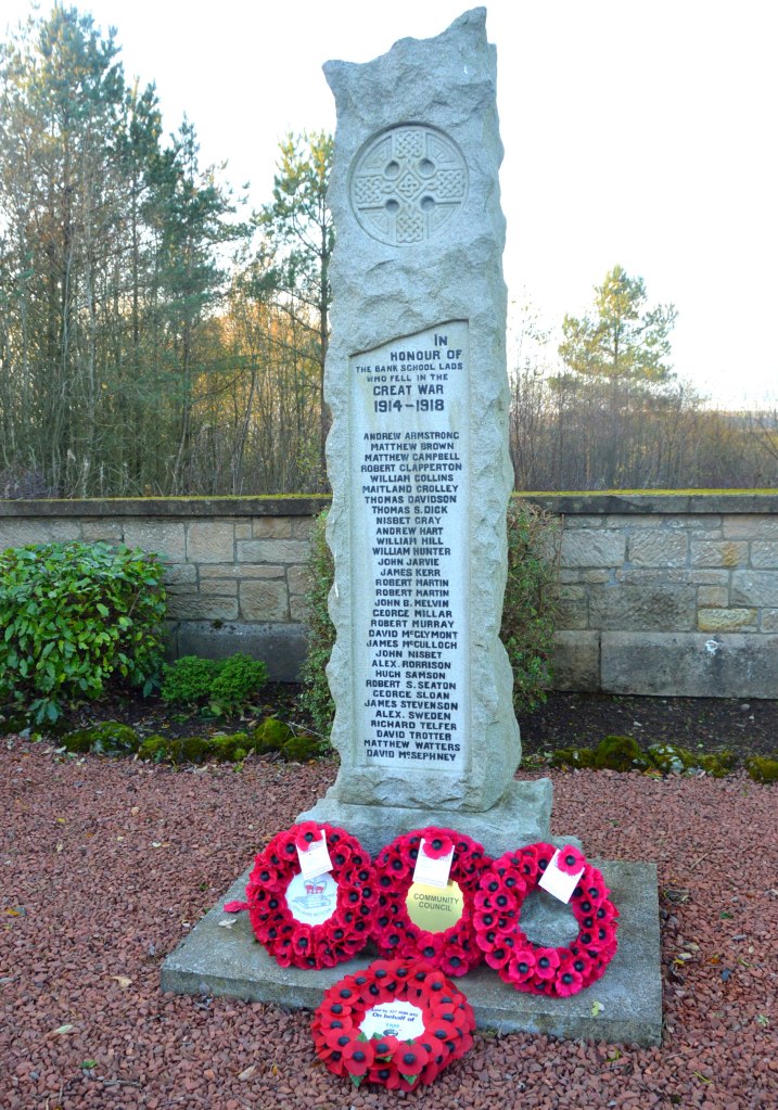 Robert Murray’s name appears on the village War Memorial in the Afton Cemetery, on the Bank School Memorial and the New Cumnock Parish Church memorial plaque.