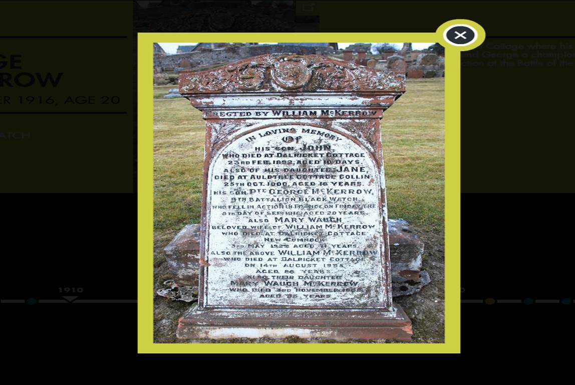 In the Auld Kirkyard, New Cumnock the tombstones of William Campbell and Margaret Young and their family stand side by of that of their son James Campbell and Elizabeth McKnight and their family.