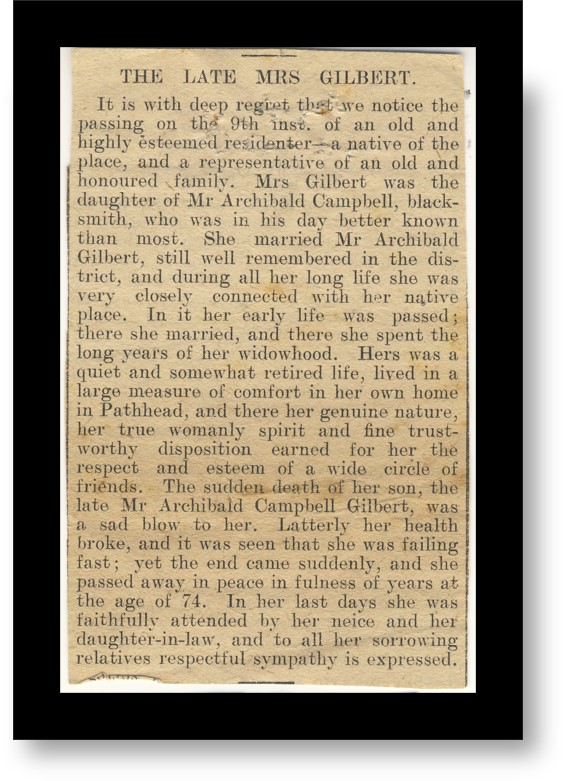 Obituary of Mary Kerr (nee McKenzie), d. 3rd Sep 1908