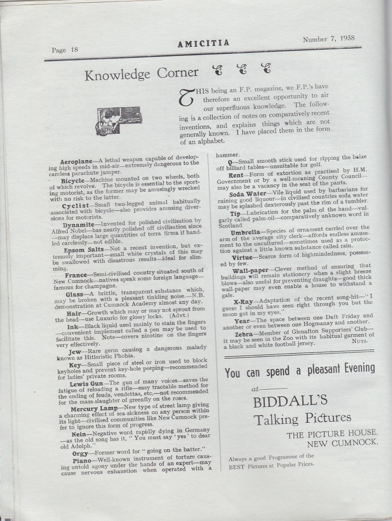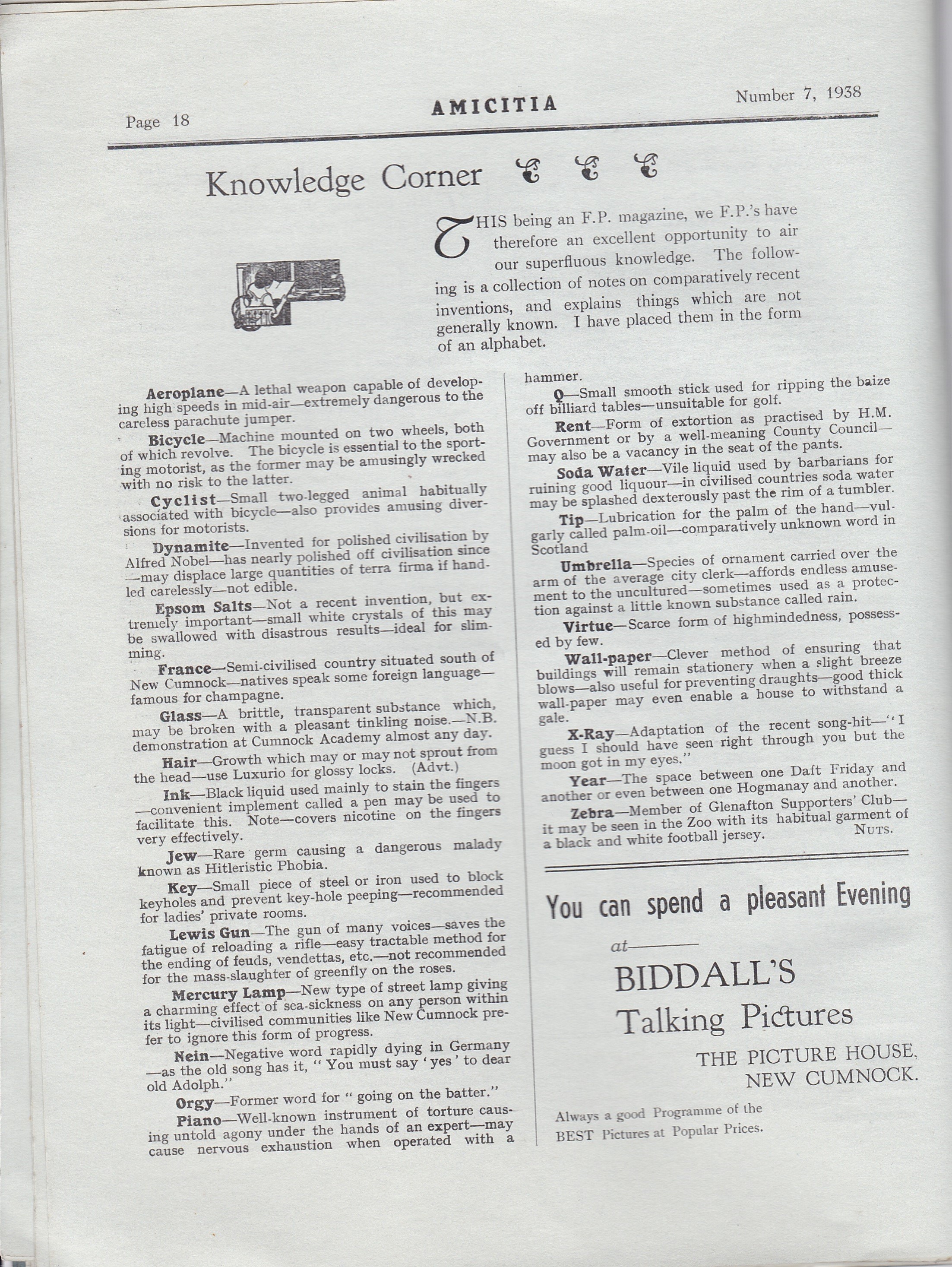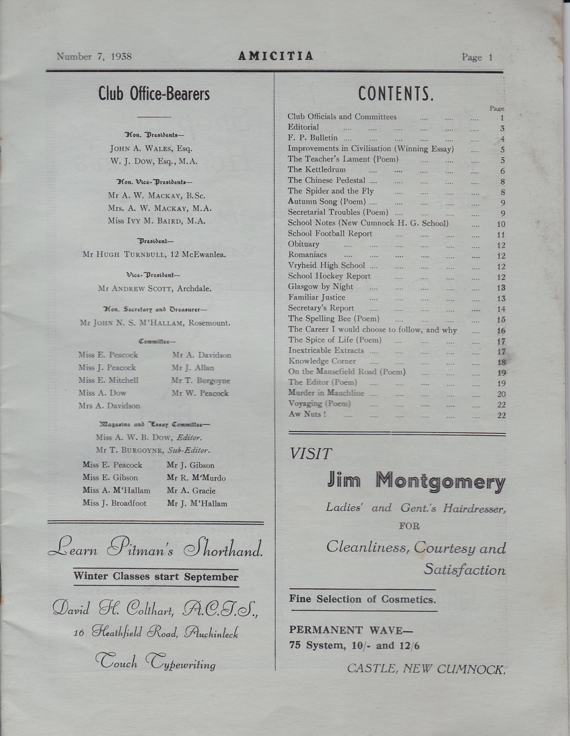 AMICIATIA 1938: Individual pages Thank you to Dickson Scott for sharing his copy of the magazine His father Mr. Andrew Scott, Archdale was Vice-President of New Cumnock H.G. School Former Pupils’ Club. Share this: Click to share on X (Opens in new window) X Click to share on Facebook (Opens in new window) Facebook Like Loading...