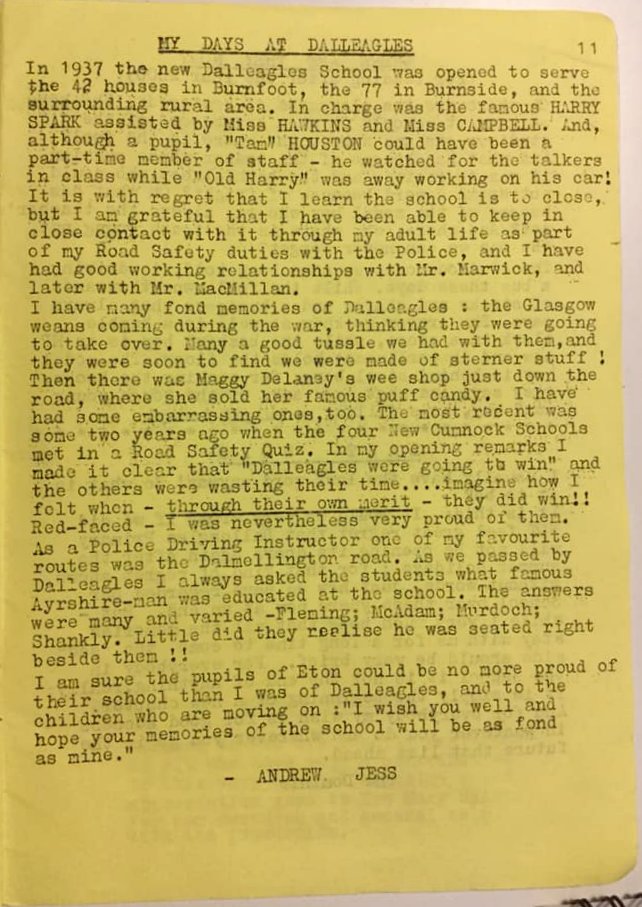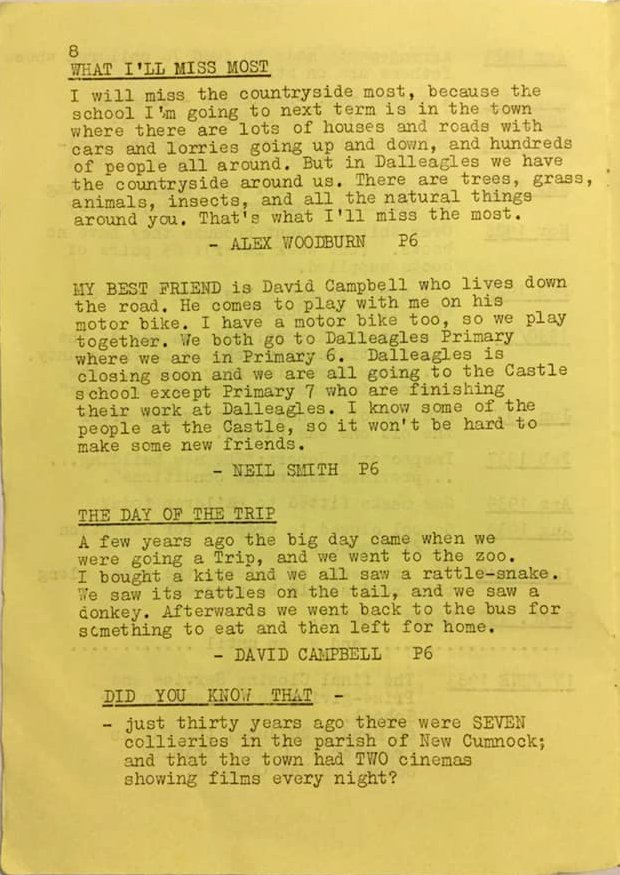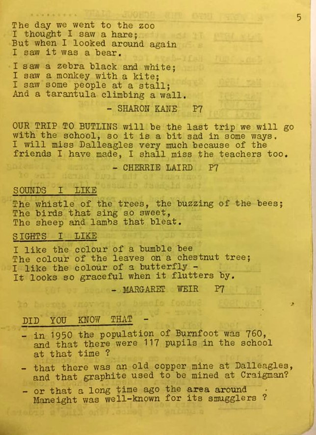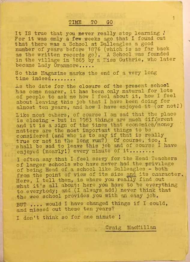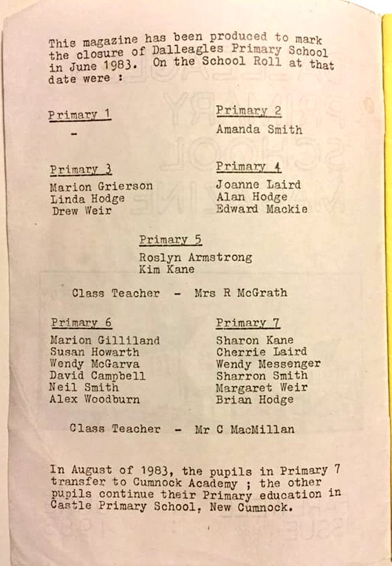 Thank you to James for providing a copy of the Dalleagles Primary School Magazine, Farewell Issue June 1983