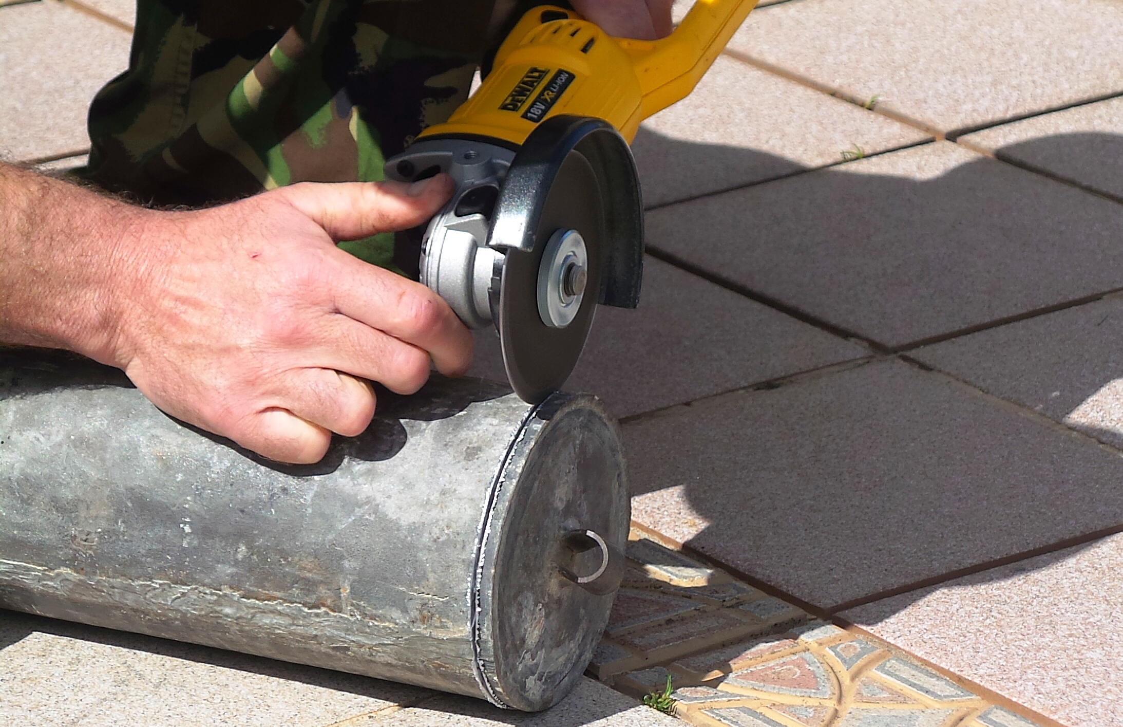 - Lindsay lines up the angle grinder