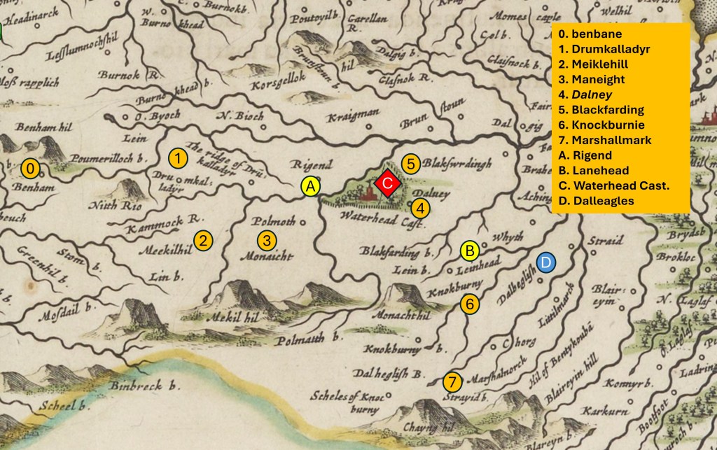 Although these lands formed part of Lord Alan’s barony of Dalmellingtom only those of Benbane were in the parish of Dalmellington while the remaining seven lands were in the parish of Cumnock.