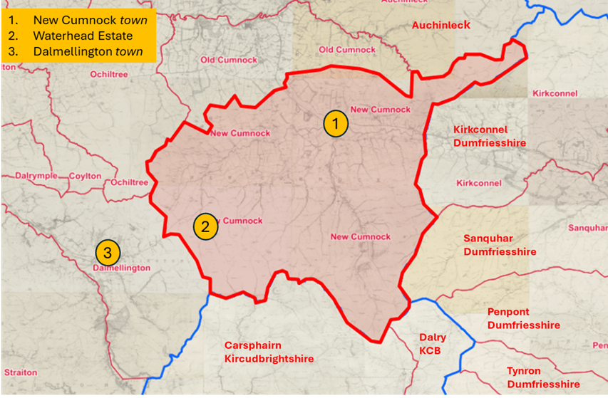 This short history of ‘The Murdochs of the Estate of Waterhead’ in the parish of New Cumnock has been inspired by the meticulous and some 50 years of research carried out by Phyll Parish (nee Dimmock) in tracing her family roots from Australia to New Cumnock. Her niece, Melissa Boyack kindly shared her late aunt’s research and inspired me to dig deeper into my own research into the placenames of New Cumnock and follow the footsteps of the Murdoch family.
