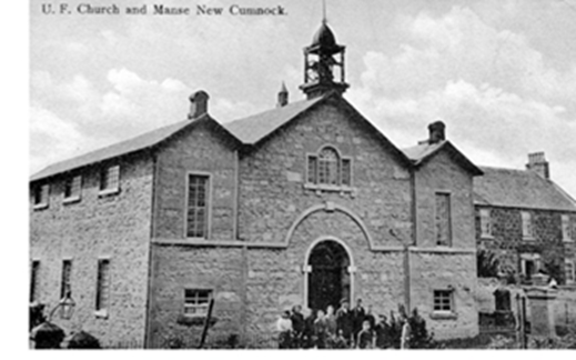 Several references to the Free Church of Scotland in various parished are encountered in the family history of the Murdochs – e.g. marriages . These churches have their roots in the turmoil within the Church of Scotland resulting in the Disruption of 1843 where some 450 ministers broke away from the Established Church, including the minister of New Cumnock, to form the Free Church of Scotland. The Free Church and manse were built on the Castlehill adjacent to the grounds of the Auld Kirk and in 1900 it served as the United Free Church.